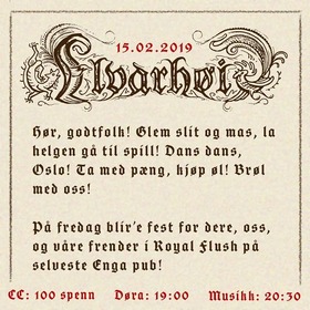 Vi er klare for semifinalen i Emergenza Nordic Festival. Efter at have eiet i de indlædende Runder er det nu duket for Elvarfest paa John Dee, Lørdag 25te April. Baalet tændes, Øllet serveres og Underholdningen begynder for fuldt klokken 23:00. Du inviteres nu til aa komme for at danse, dricke, synge med og have en genereldt god Aften.